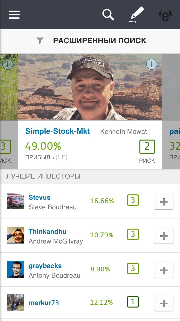 Среди основных добавленных функций приложения: Trader Charts («Имитация копирования») — график, позволяющий проводить анализ потенциального копирования сделок в режиме «А что, если…?»; Editor’s Choice — чтобы участникам было проще находить трейдеров, чьи сделки вызывают наибольший интерес у сообщества, они включены в People Discovery Area, раздел, в котором участники могут переключаться от профиля одного популярного инвестора к другому, отслеживать их инвестиционную активность и читать комментарии об их методах торговли; Mobile mentions trading — новостная лента в мобильном приложении оптимизирована и позволяет мгновенно совершать сделки прямо из нее, уменьшая количество кликов, необходимых для завершения сделки; Compare & Share — пользователи могут более эффективно использовать аналитическую информацию, сравнивая показатели двух или более трейдеров на одном графике.
